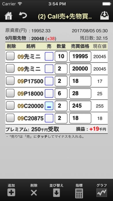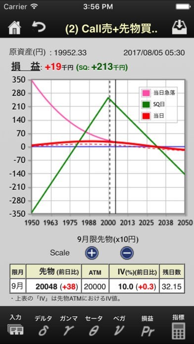 このアプリを利用すれば平日忙しいサラリーマンで時間がなくてoptionの管理が出来ない時に最適なアプリです。ポジションに応じた指数や損益曲線を簡単に作成出来ます。