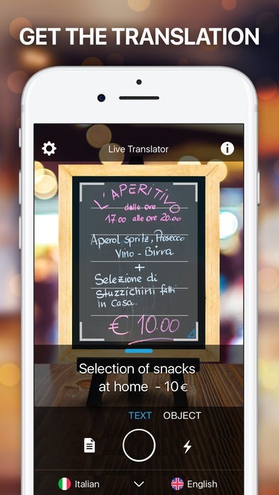 海外旅行に行った際、道路標識や看板、レストランのメニューなど読めなくて困る事があります。そのような際、このアプリを使いLive Translator画面で文章をスキャンするだけで簡単に書いている内容がわかります。海外旅行での心配がかなり減る事間違いありません。