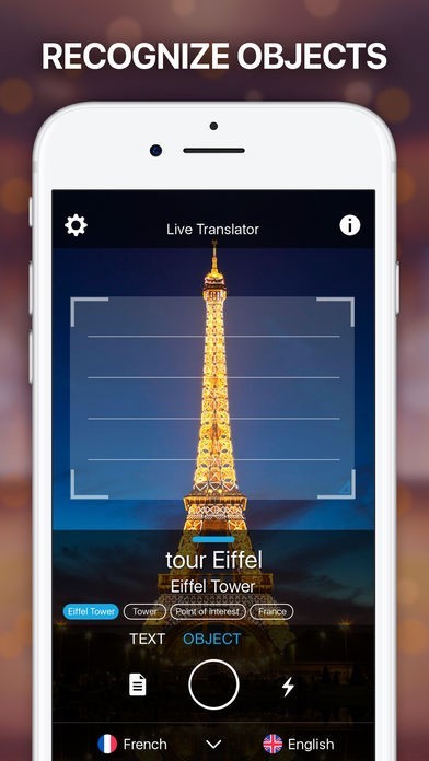 文章の翻訳だけでなく、海外旅行に行った際には使える建造物などオブジェクトを認識しその名前を教えてくれる機能が搭載されています。また、認識した名前は音声発音してくれます。