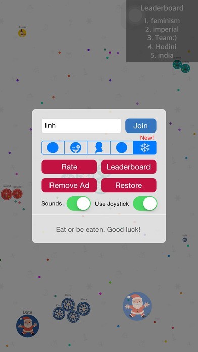 App Storeより引用Welcome to Hungry Dot Multiplayer Online. You and all the other real players are dots and you must eat dots smaller than you and avoid the ones larger than you.