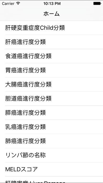 肝硬変重症度Child分類・消化器癌進行度分類とは消化器系の医師、医療関係者向けに作られたアプリで Child分類という肝硬変の患者に手術を行うに際して使われる一つの判断基準をタッチ操作で判断ができます。 判断結果は合計点数やA〜Cのどれに当たるかで表示され一目で確認ができるので日々の診療での判断スピード向上の助けになります。 Child分類以外にも、胃や食道、肝臓ガンなど様々な症状の判定ができるコンテンツが多く用意されています。