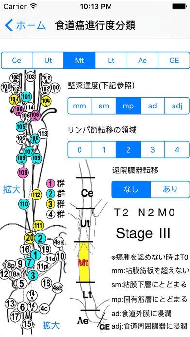 医療の現場で使うと診断が速くなる!癌の進行度分類機能は入力すると臓器のイラストに色がついて表示