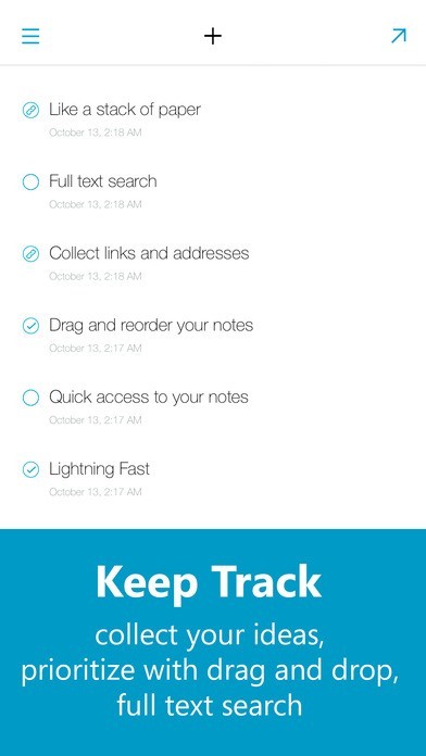 - Quick capture: Every time you open the app you get a new blank note ready to capture your ideas.