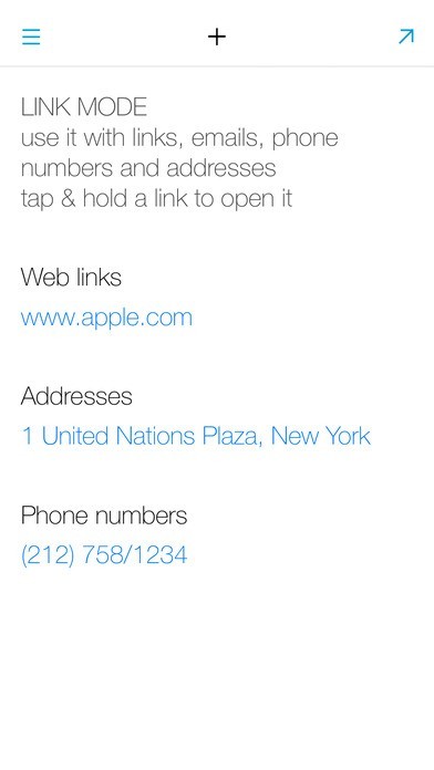 - Link mode: Capture phone numbers, addresses and URLs and make them tappable links.