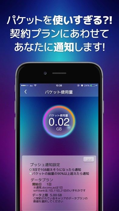 パケットを特定のスパンを通してではなく、好きな期間内にアレンジできます。またその間に消費した分が事前設定の範囲以上になったか調べなくてもウィンドウで瞬時に伝達できます。