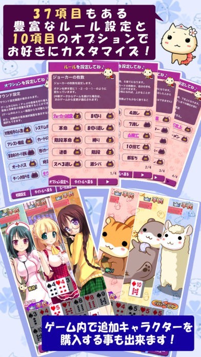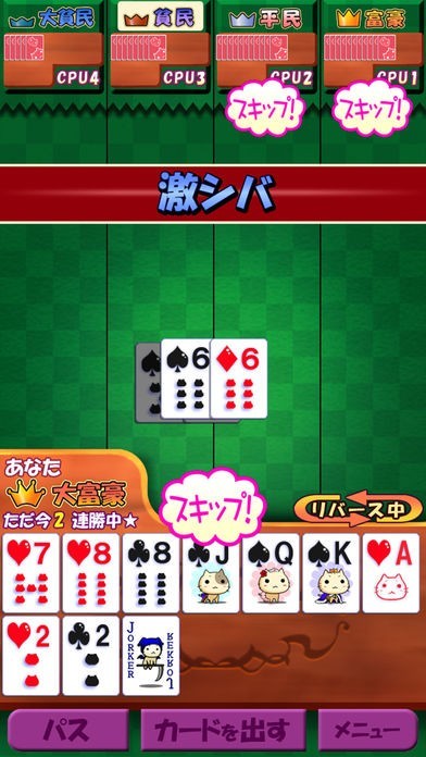 ・カード交換(同時に交換/大富豪と富豪が先にカードをもらう/交換しない から選択)