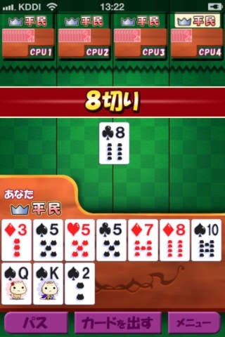 ※有料版の「大富豪しよっ!」では、36項目の豊富なルール設定が出来ます。
