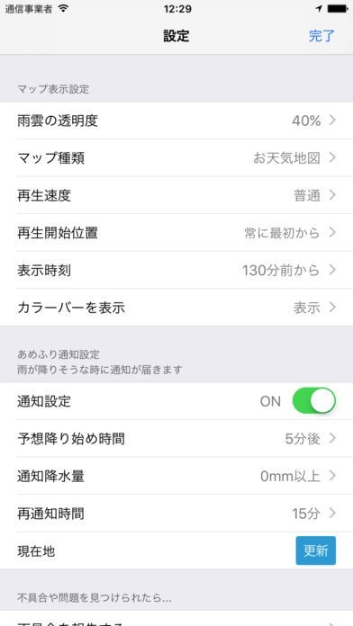 雨雲のチェックに最適!雨雲の透明度やマップの種類は随時変更可能!