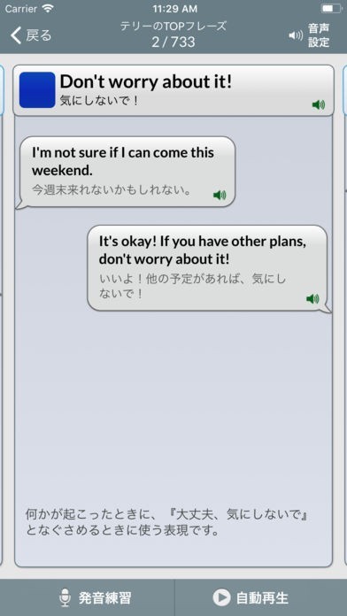 初心者には十分な数のフレーズが収録されています。音声認識で発音チェックができて助かっています。