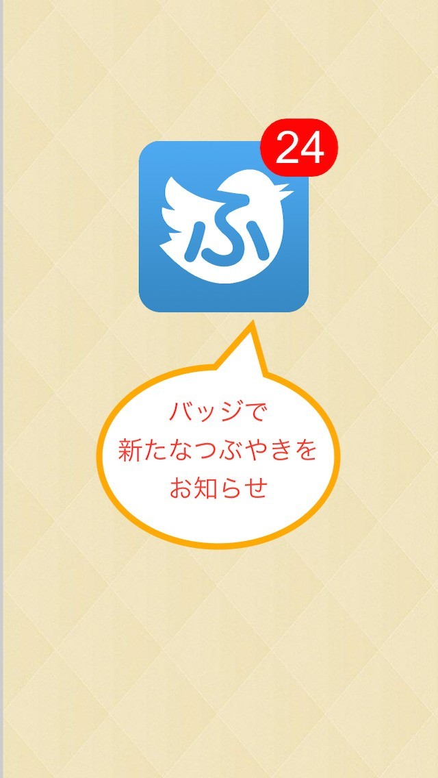 2.アプリのバッジに新たなつぶやき件数を表示します。