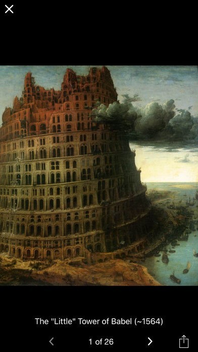 App Storeより引用Pieter Bruegel (also Brueghel) the Elder (c. 1525 – 9 September 1569) was a Netherlandish Renaissance painter and printmaker from Brabant, known for his landscapes and peasant scenes (so called genre painting). He is sometimes referred to as the "Peasant Bruegel". From 1559, he dropped the 'h' from his name and signed his paintings as Bruegel.