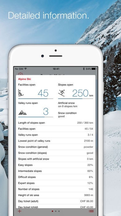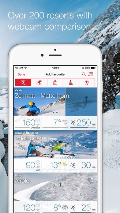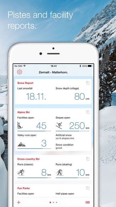 The Swiss Snow Report App from Switzerland Tourism includes snow and facilities information for more than 200 Swiss winter resorts. Updated several times a day, the extensive database provides detailed information about the following winter sports: skiing, cross-country skiing, sledging and winter hiking.