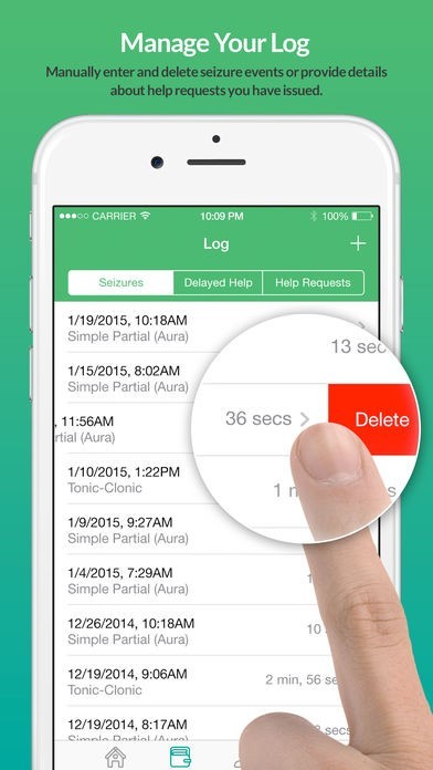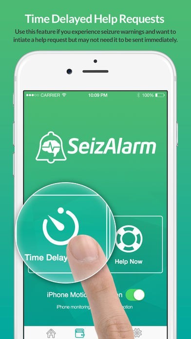 - There is also a manually activated time delayed help request feature (via the "Time Delayed Help" button) that is helpful for those that have localized seizures (auras) that may turn into generalized tonic-clonic seizures. You are able to custom set the delay time in the settings. When a seizure warning is initiated you will see a countdown which can be extended via the press of a button. If you end up becoming unresponsive due to a seizure then once the timer ends a help request will be sent.