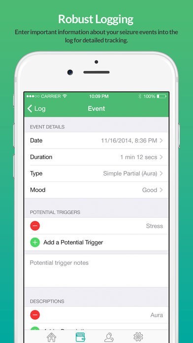 - You can are also able to track your seizure events with robust logging features. A log dashboard gives you a high level view of past events. You can also export reports to provide to your doctor.