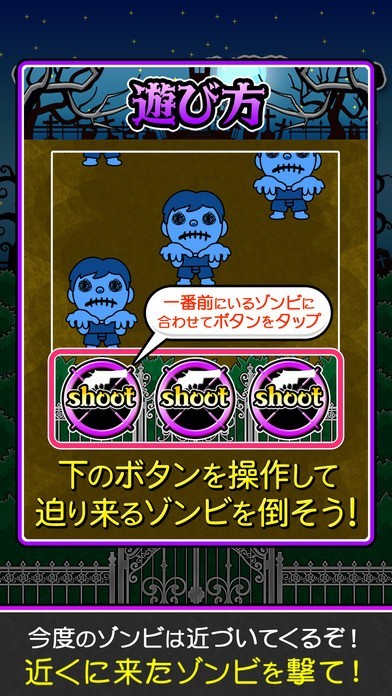 ショットボタンをタップして襲い来るゾンビを撃退!ランキングで友達とスコアを競って盛り上がれる!