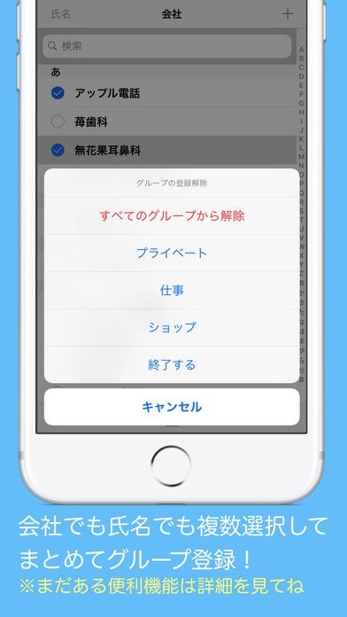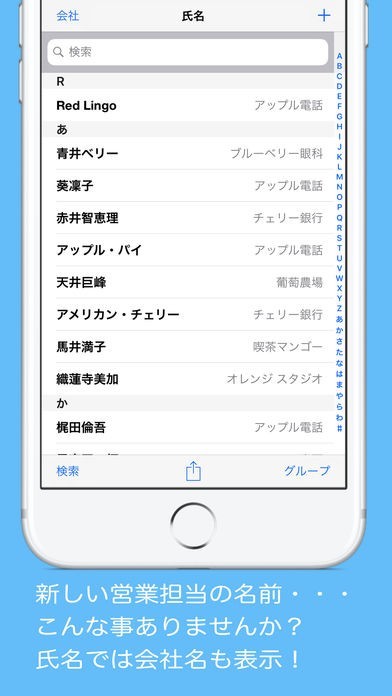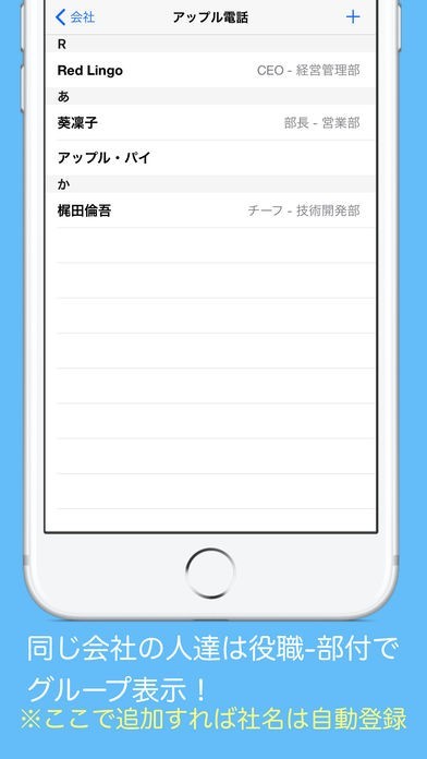 会社ごとにグループ分け!一覧に所属先が表示される便利な電話帳