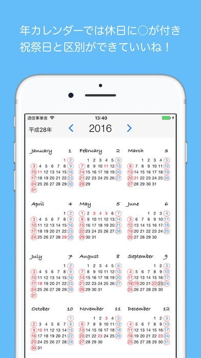 土日祝日と休日の区別が一目でわかる