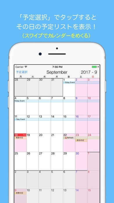 休日を登録して予定を書き込める