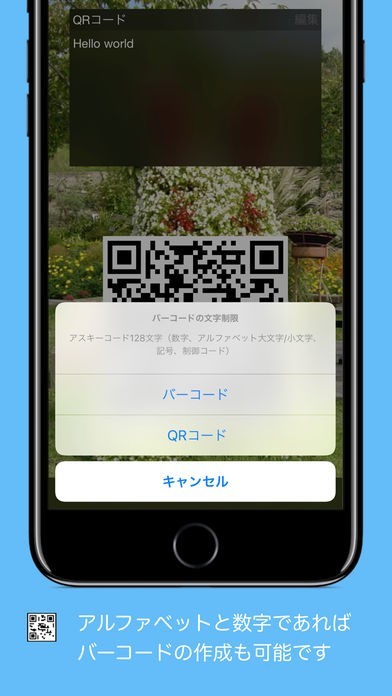 アルファベットと数字からオリジナルのバーコードの作成もできる