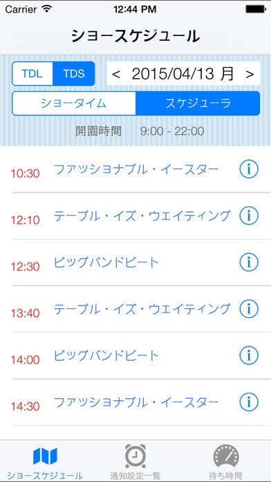 東京ディズニーリゾートのショー・パレード開始時刻をすぐに確認できる!