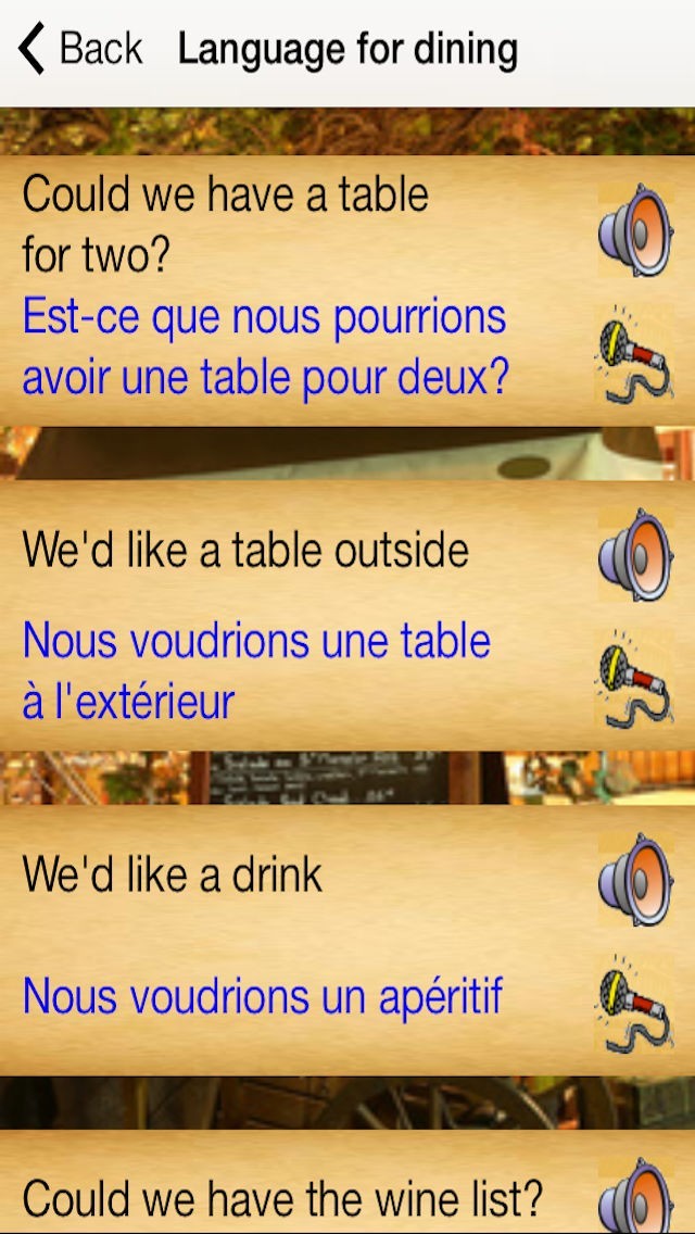 発音が難しいとされるフランス語ですが、このアプリには各フレーズにネイティブスピーカーの音声が収録されています。また、自分の発音を録音して聞き直す機能もついているのでフランス語の練習も可能です。