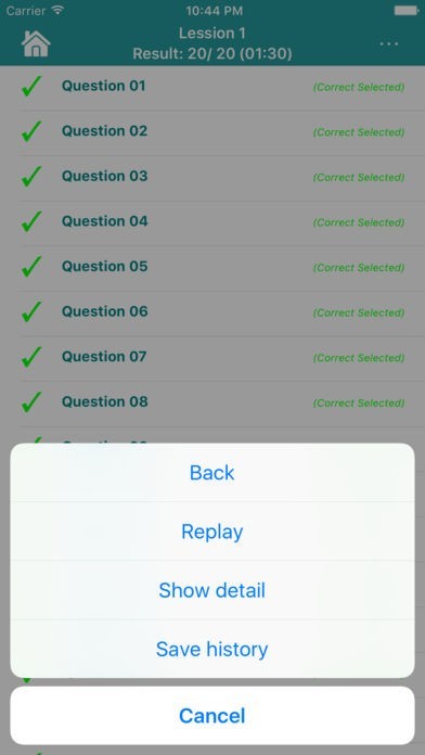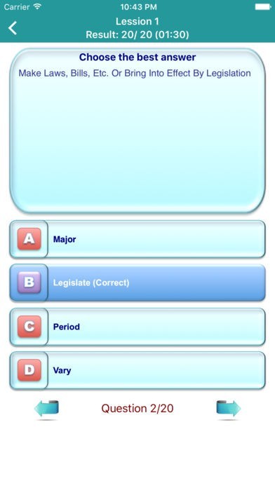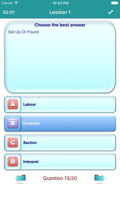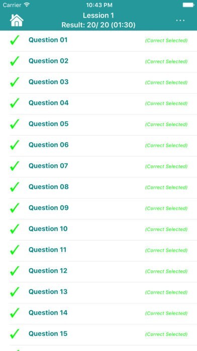 Every test contains 20 questions and each question has 4 answer options. You have to select the correct answer. In the end of each test you can check your answers.