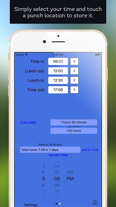 タイムカードを記録することができるアプリです。入力できるのは仕事の開始時刻とランチタイムの時間、それから就業時刻となります。シンプルな設計なので誰でも扱うことができるはずです。