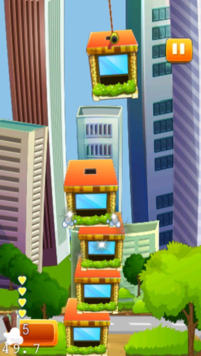 プレイ中は画面左下に積んだ建物の数が表示されます。タワーが高くなり一番下の建物が見えなくなっても安心です。タワーの背後のビル群を見れば、現在の高さをアバウトに推測することができます。