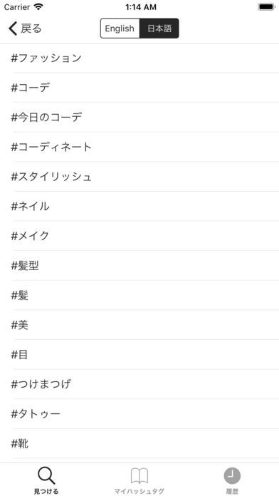 日本語か英語か検索画面で選択することができるので、国内向けだけではなく海外向けに投稿しているアカウントのタグ付けにも使用できます。またタグ使用時はタップ操作でテキストのコピーができるので、手入力時のようなスペルミスなども起こりません。