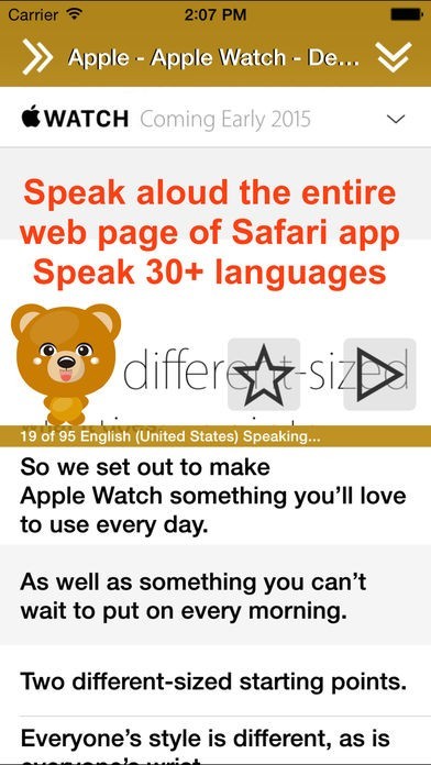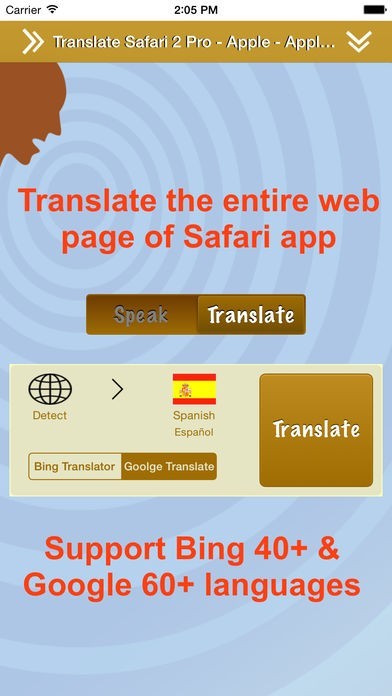 The app is a Safari extension that translates and speaks aloud the entire web page of Safari app.