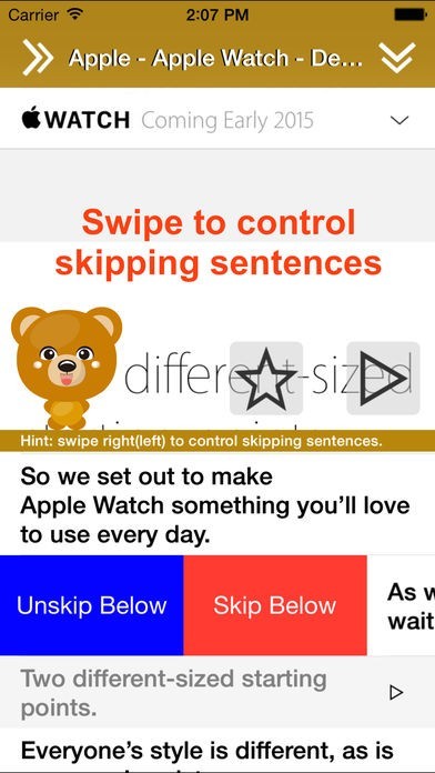 Swipe a sentence right and tap the [Skip Below] or [Unskip Below] button to skip or unskip all below sentences.