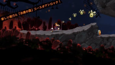 レイマンは自動で走っていき、戻ることはないので1ステージ1分ほどでプレイできます。ちょっとしたスキマ時間で遊ぶことができ、ステージにあるルビーのコンプリート目指して何度でもチャレンジできます。