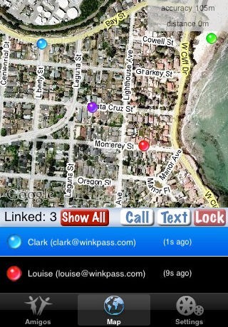 地図の下のリストの中から通話やメッセージを送りたい相手の名前をタップすると"call"と"text"ボタンが表示されるので使用したい方法のボタンをタップするとアプリから直接連絡を取ることが可能です。