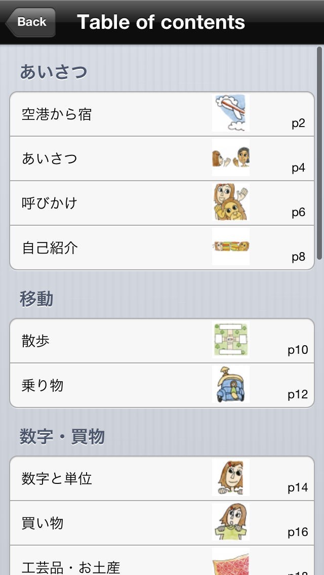 あいさつからトラブル時に使いたいフレーズまで、様々なジャンルの重要なフレーズが学べます。また、使いたいフレーズが探しやすいのも、このアプリの特徴となっています。