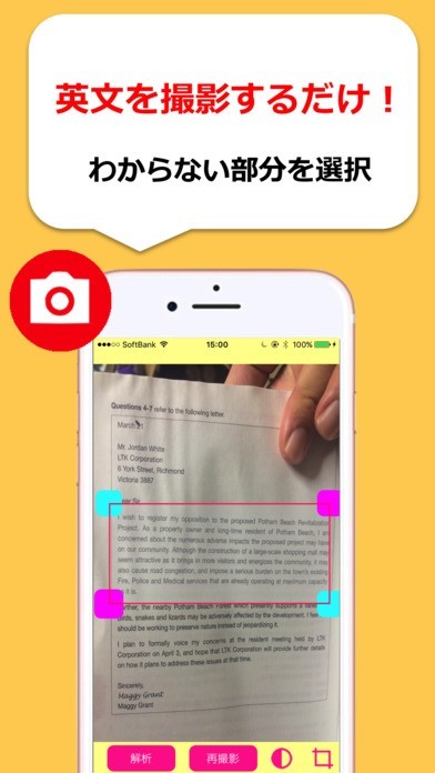 カメラを起動して撮影するだけ!英文撮影機能で判らない英語は即翻訳!