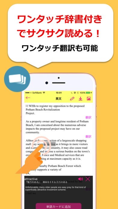 辞書をひく手間無し!ワンタップでラクラク翻訳出来ちゃう。