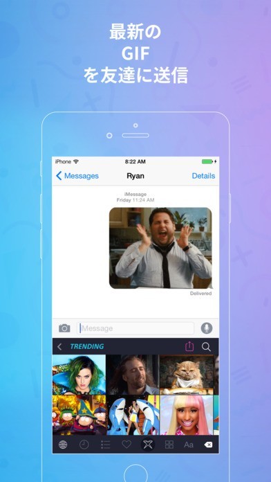 GIFキーボード機能でいつもとは一味違うメッセージを作成!検索機能で面白GIFを発見しよう!