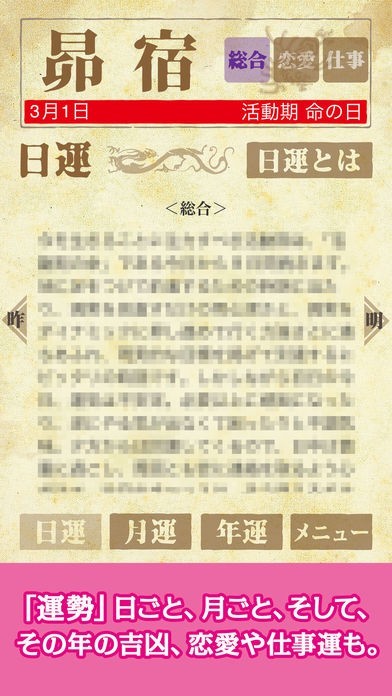 占いが好きな方は、総合や仕事、恋愛の運勢結果が読める