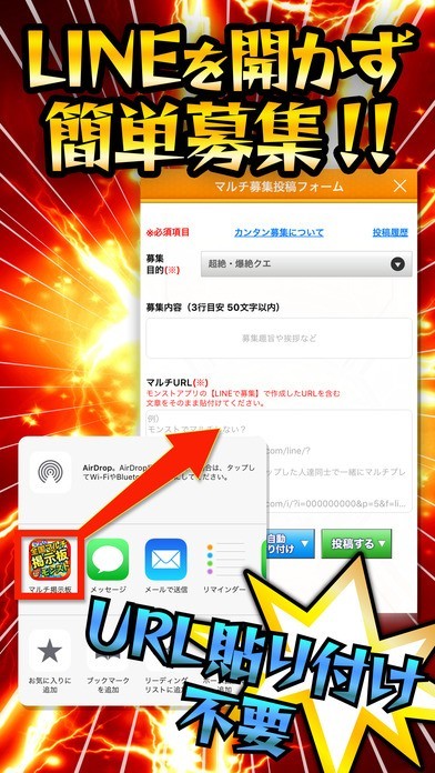 ラインへのコピーという無駄な手間なくマルチ掲示板に投稿可能!!