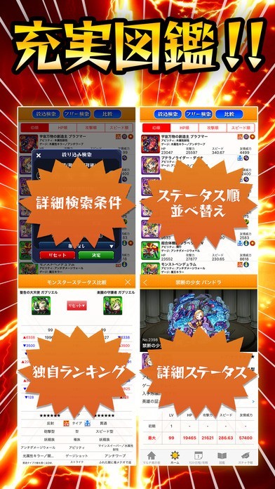 「全国マルチ掲示板攻略 for モンスト」は、LINEでコピペという手間を省いてマルチ掲示板に投稿することができるモンスターストライクのアプリでとても簡単に仲間を発見することができ、モンスターストライクの攻略の助けとなります。それだけではなく、「全国マルチ掲示板攻略 for モンスト」は、モンスターストライクのモンスター図鑑が用意されており、モンスターの情報が細かく描いているので、モンスター図鑑を見るだけでも楽しむことができるアプリです。