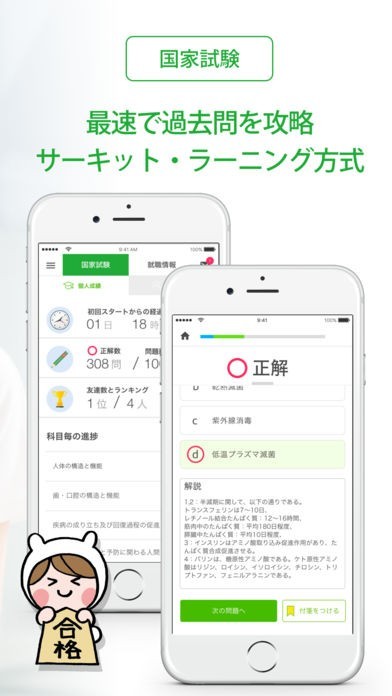 歯科衛生士を目指している学生が過去5年分の過去問に挑戦することができ、苦手分野に絞って勉強できる