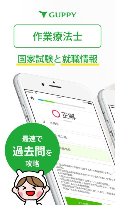 App Storeより引用作業療法士 国家試験&就職情報【グッピー】は、作業療法士国家試験対策と就職活動が同時にできるアプリです。