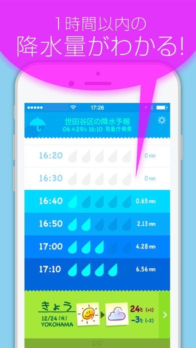 雨の確認に便利!降水量予報グラフで直近1時間の降水量予報を表示!
