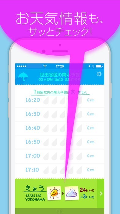 今日明日の天気予報もチェックできる!毎日の天気確認に活躍!