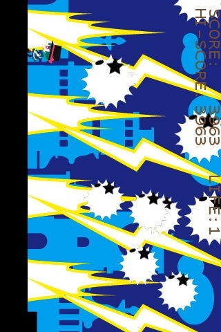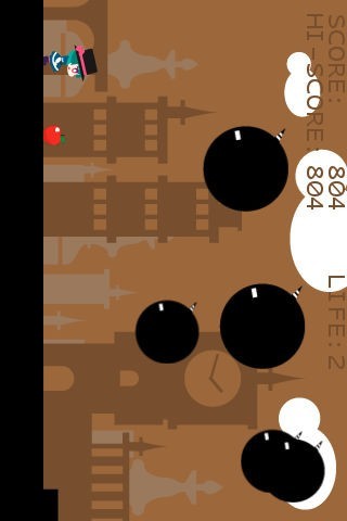 スマートフォン本体を傾けて主人公を動かし、敵キャラクターや障害物を避けながら進む!