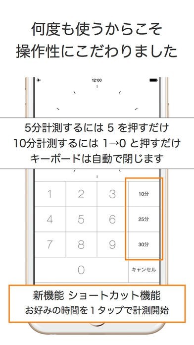 タイマーの使い方は計測したい時間を入力するだけでOKという極めてシンプルな設計になっており、画面をスクロールして時間を合わせるようなちょっとした手間もなく使えます。
