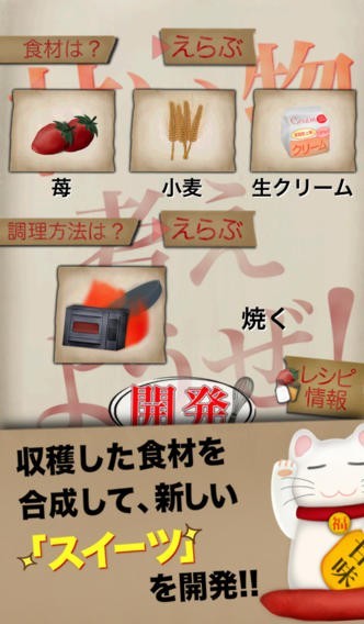 新しいスイーツをどんどん開発して、売上金で畑を拡張し、生産性を上げてお店を大きくしよう!