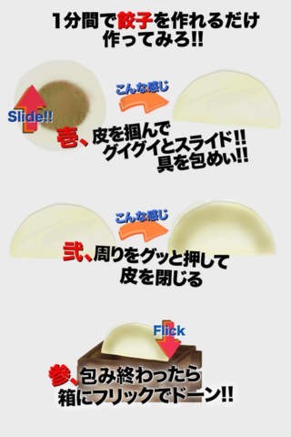 スライド、フリック操作で一分間餃子をひたすら作り続けることができる!