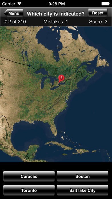都市の名前の4択問題に答えながら覚えていくので、世界の都市がちょっとずつわかるようになってきました。