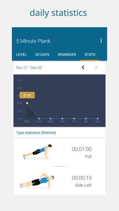 App Storeより引用いくつかのバリエーションで数分間押し上げ位置を維持することで、完全にフラットな腹部と強固なコアへの道を見つけることができます。 このアプリはあなたの体を強くするために訓練する10の増加するレベルを通してあなたを導くでしょう。 プランクは体のあらゆる筋肉を機能させるので、さまざまなタイプの厚板を持つことができるときは、他の身体運動は必要ありません。 ここでは、完全な厚板、肘板、歩行板、側板、そしてもっと多くを考え出すことができます。 正しいテクニックを学び、挑戦してください。